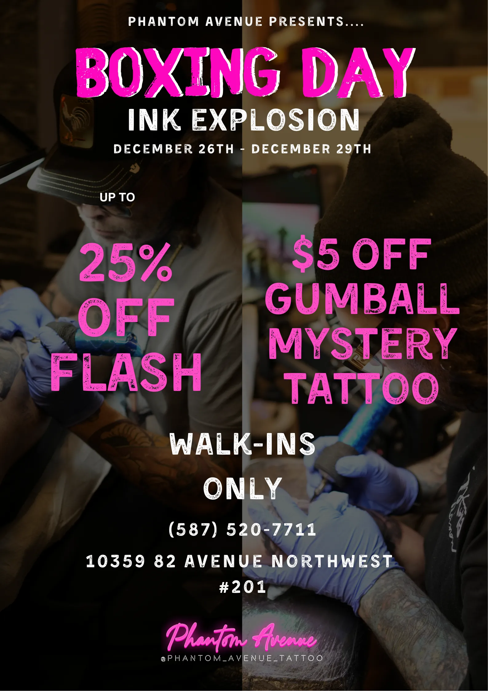 Phantom Avenue Presents: Boxing Day Tattoo Deals December 2025 in Edmonton